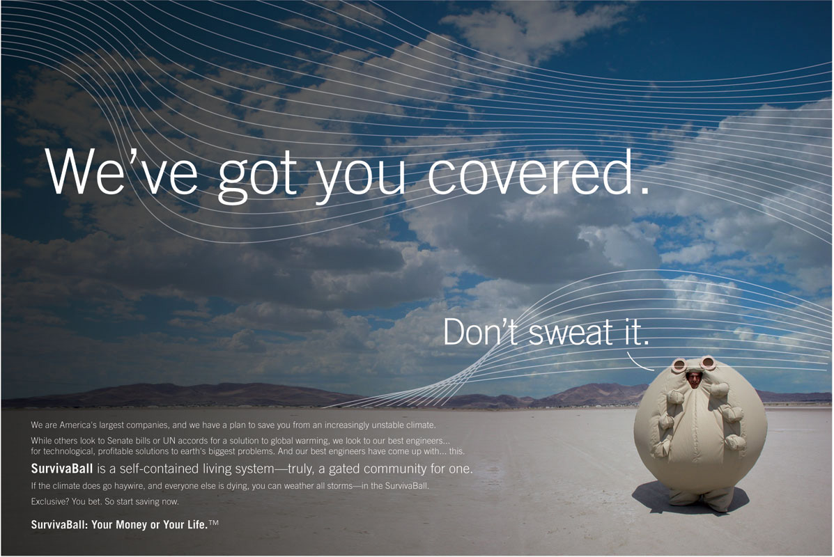 KA: The concept-to-finished timeframe for the Yes Men projects is generally pretty fast. As soon as anyone knows what is going on, it is already getting done.