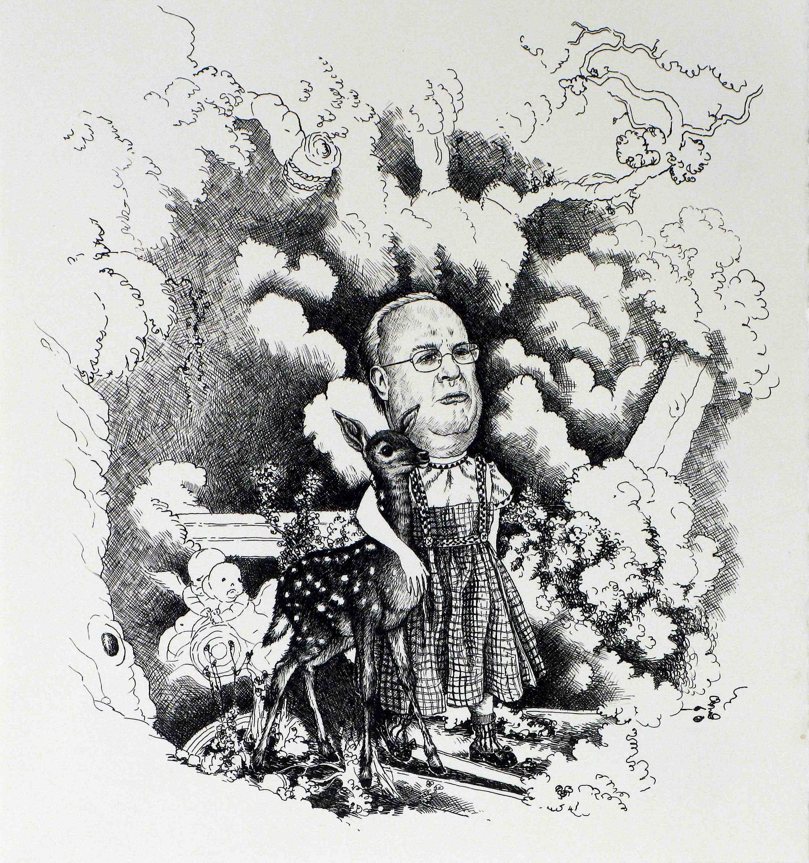 BTB: Your new work in Perfect Happiness pairs various cultural classics like Alice In Wonderland and the Wizard of Oz with ‘political’ characters like Nixon, Kennedy, Rove, Jessie Helms, Dr. Laura, and MLK, Jr. How did you go about pairing them?