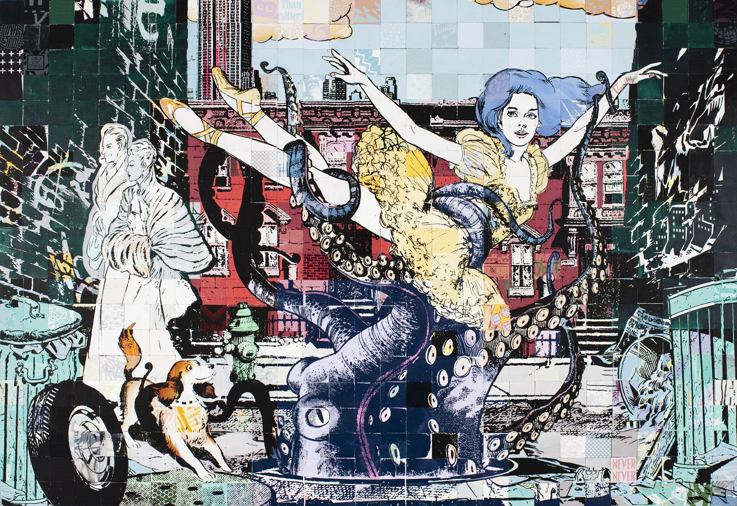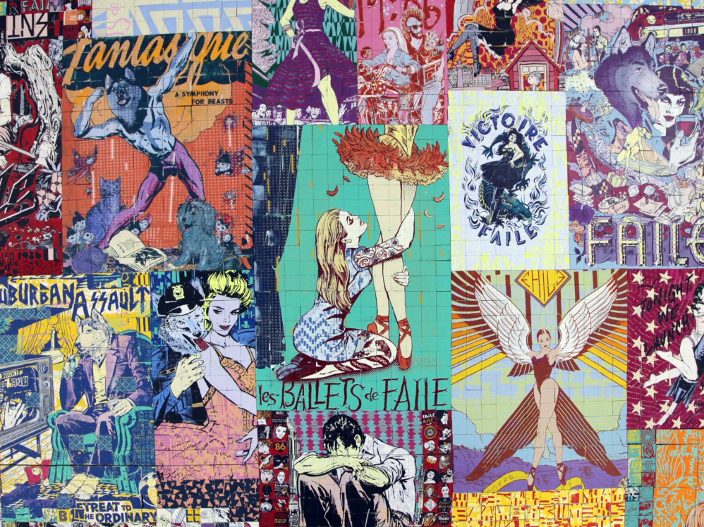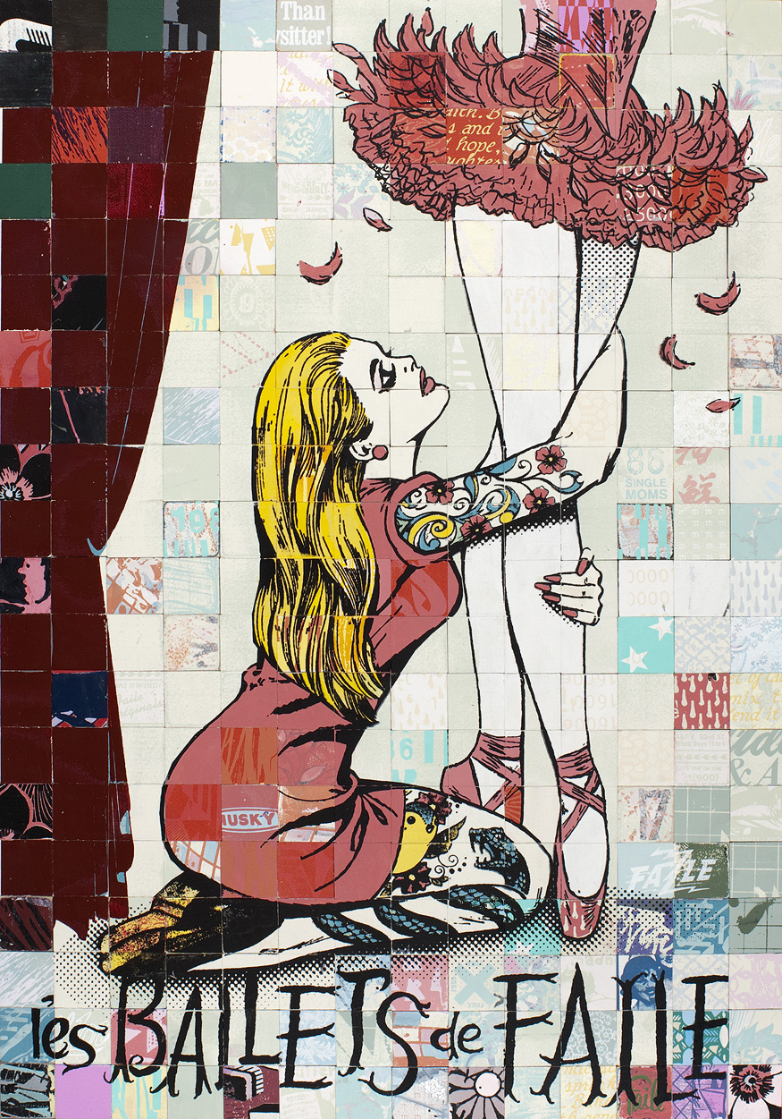 FAILE’s ultimate success in New York sprung from being featured in both a Banksy show – Cans, held in a train tunnel – and a week later, at the Tate Modern. In London. That catapulted the duo through the cultural hoops over the ensuing four years to collaboration with the ballet in New York, as unexpected as it may be. It’s as if they’ve made a career oscillating between the high and low, enabling an average amount of street and fine art world credibility: a difficult feat for rising stars in the digital age.