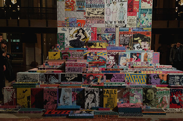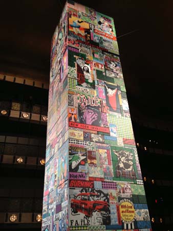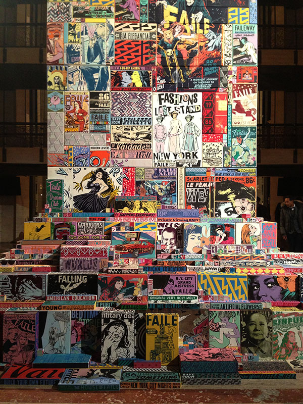 There are at least some parts of town where that is true – and they were nowhere near where we were standing, under the forty-foot tall ceiling of this luscious alter to New York’s cultural dominance. It was a world away from where the FAILE tower, open to the public through February 17 and installed through the spring, was first conceived.